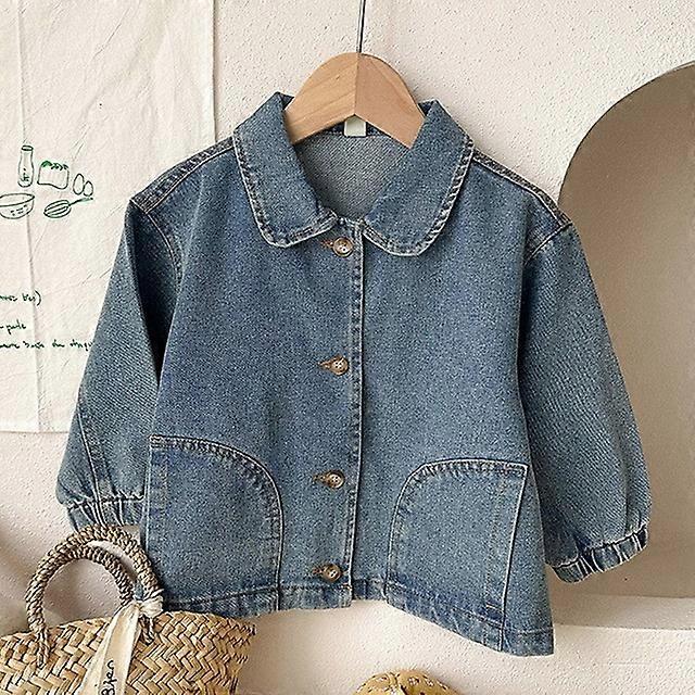 JWL-Spring New Kids Boy Girl Coat Denim Blue Lapel Long Sleeves Leisure Jacket Outfits Children Unisex Coat E23000