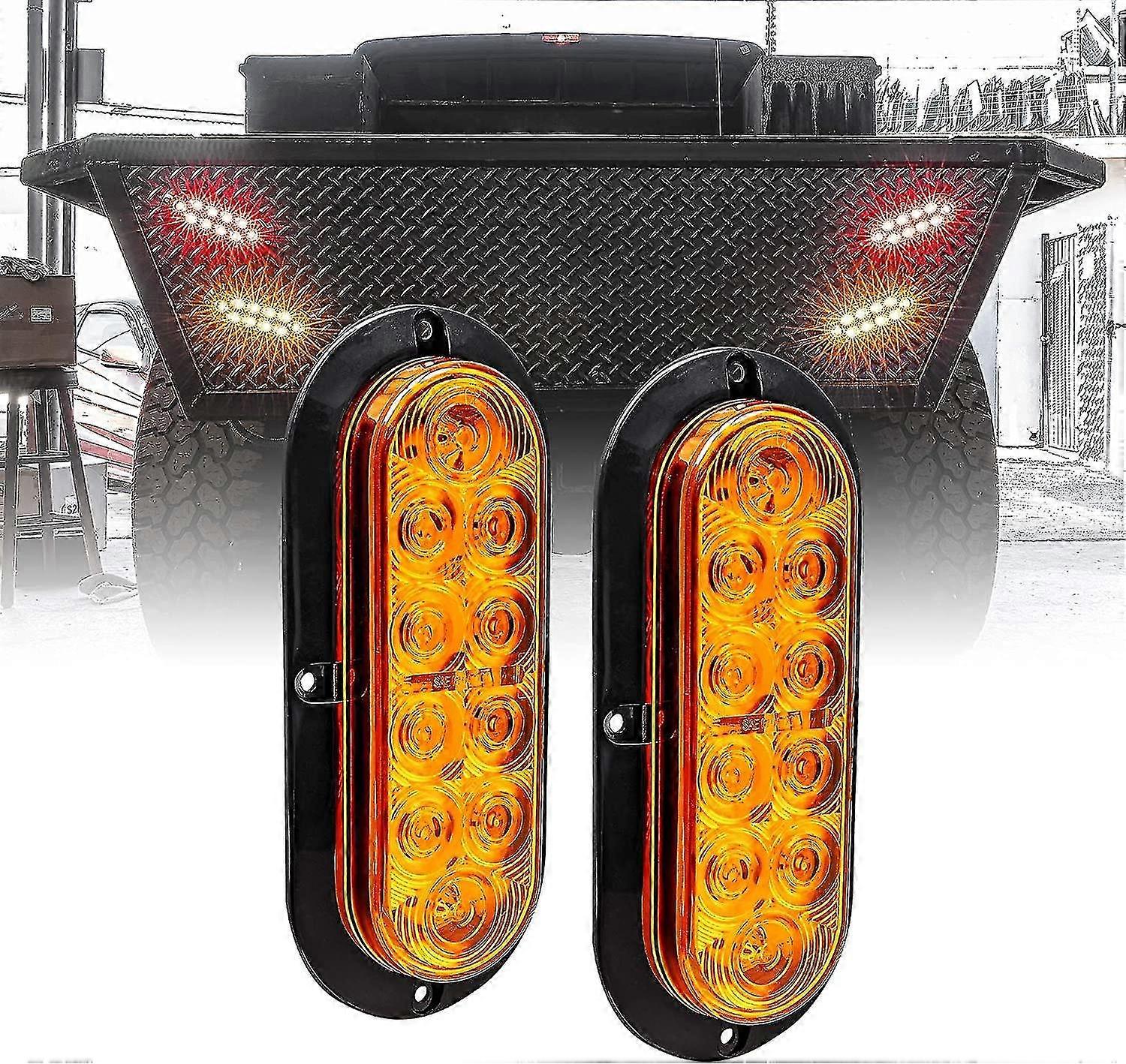 6 Inch Amber Oval Led Trailer Tail Light Kit [Dot Fmvss 108] [Sae I6p] [Surface-Mount] [Ip67 Waterproof] [Park Turn Signal] 2 Pieces