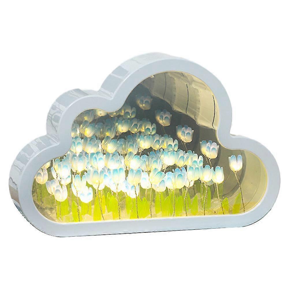 Cloud-Shaped Tulips Mirror Night Light Ornament Personalized Delicate Bedside Lamp Gift for Valentine's Day
