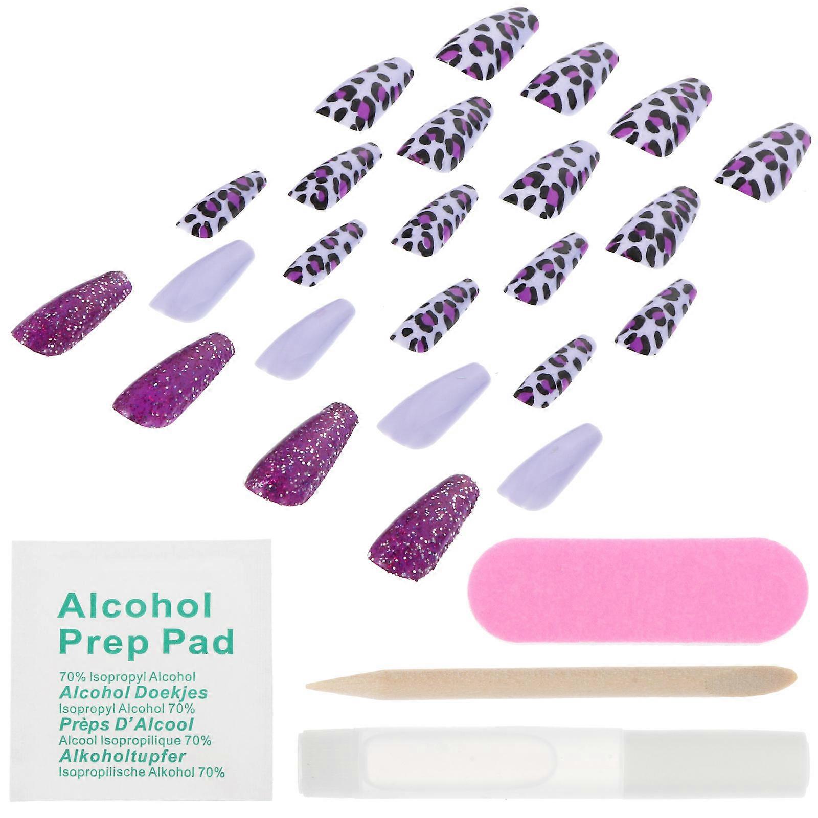 Leopard Press on Nails Full Cover for Women Nail Decoration Purple Abs 24Pcs