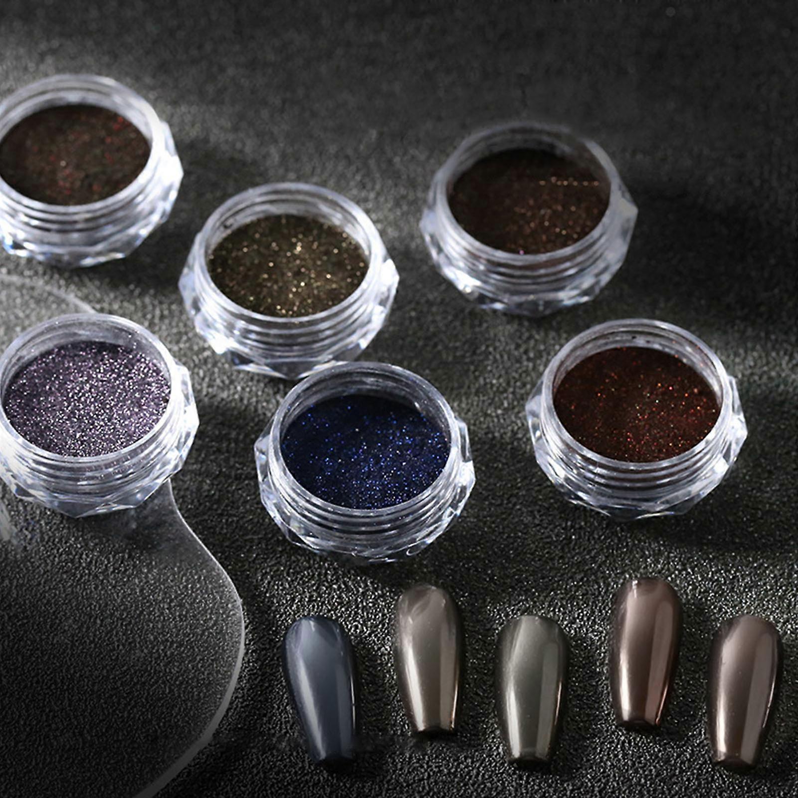 Maillard Style Coffee Brown Mirror Glitter Effect Chromes Pigment Powder Manicure Tips With Sponge Applicators FLYE3147