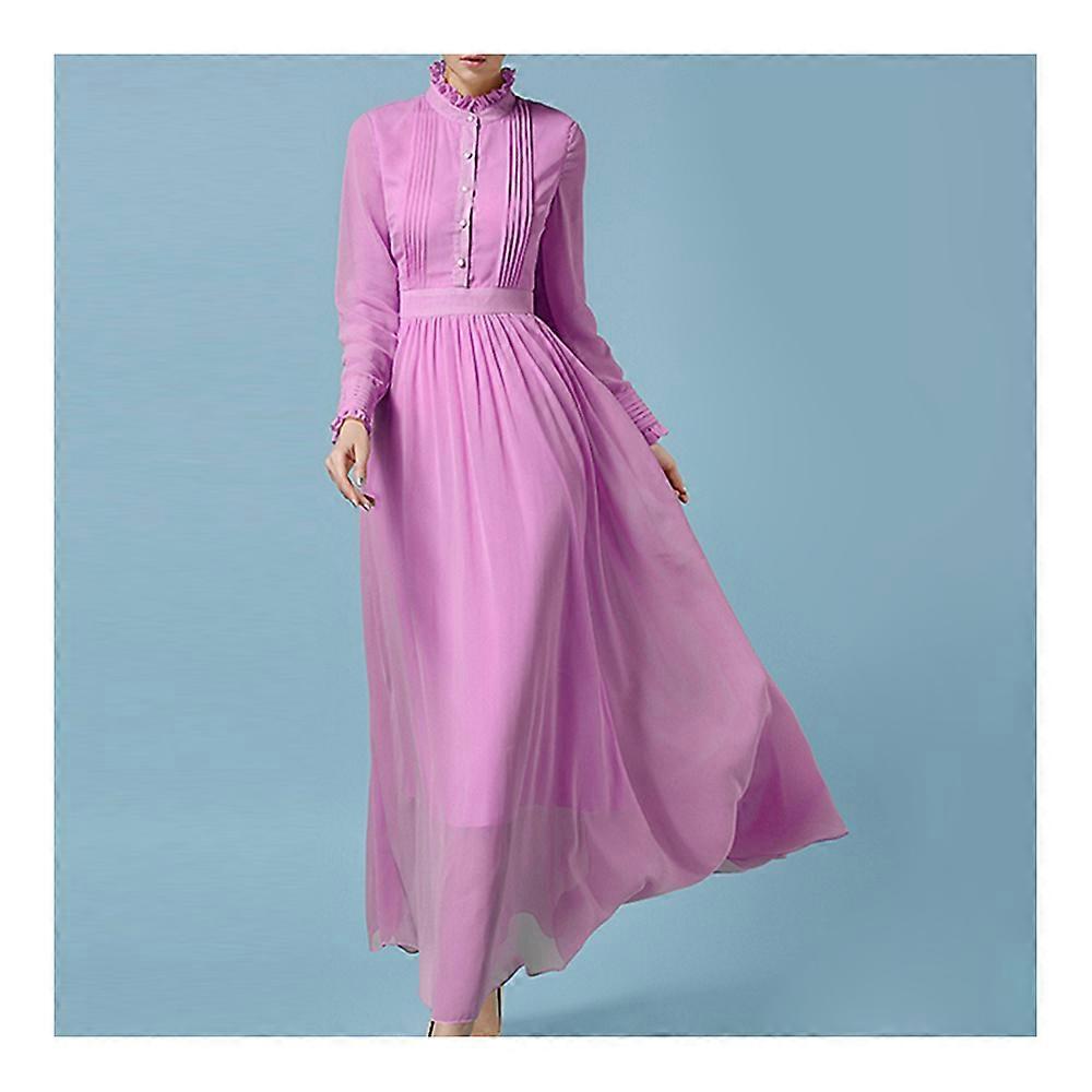 Long Sleeve Dress Stand Collar Macrame Pleat