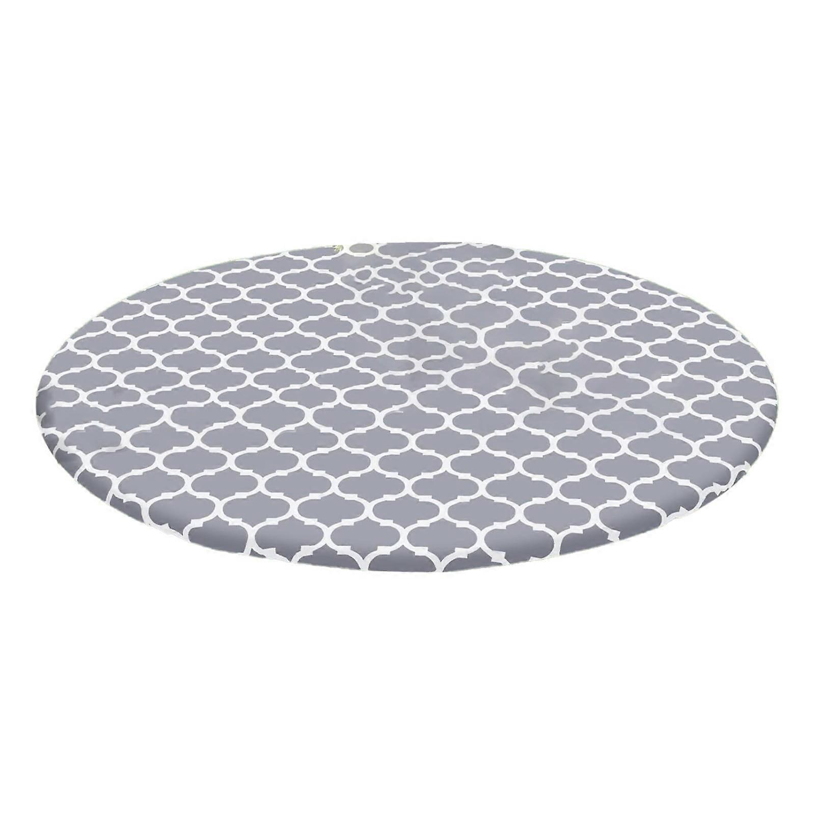 MANMAN Clearance Round Table Cloth, Elastic Fitted for Picnic Tables, Wipeable Flannel Vinyl, Indoor Outdoor Use, Grey