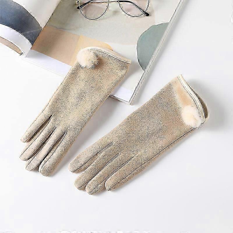 Warm gloves suede leather winter windproof temperament cycling driving windproof women's five finger gloves plush small flower gloves