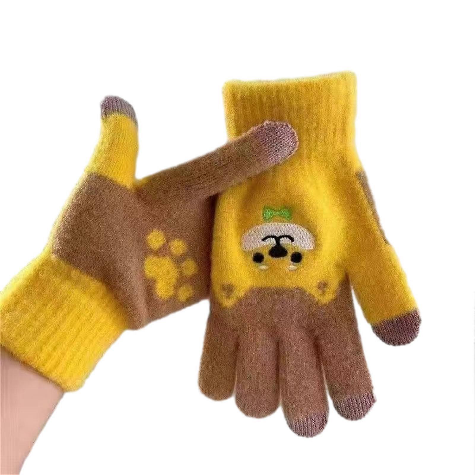 Lovely Knitted Touchscreen Cycling Gloves Cold Proof Windproof Gloves for Women Girls