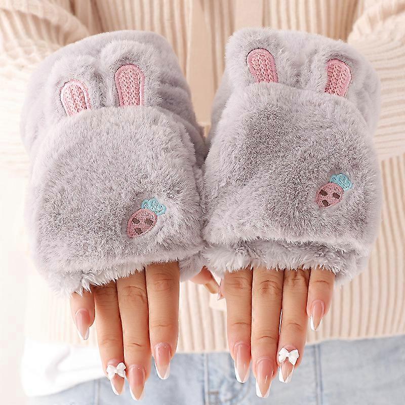 Gloves women's flip cover winter warm and cold-proof writing leakage finger cartoon rabbit ears radish