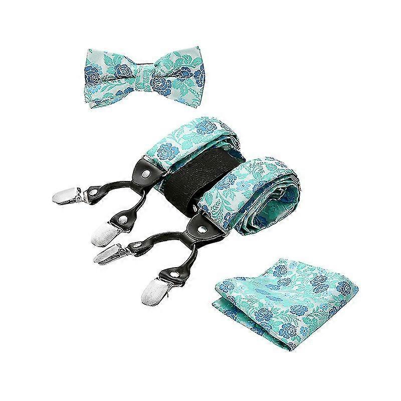 Men's Brace For Trousers With 6 Strong Clips Check Plaid Y Shape Braces & Bow Tie & Pocket Square Set Adjustable Suspender