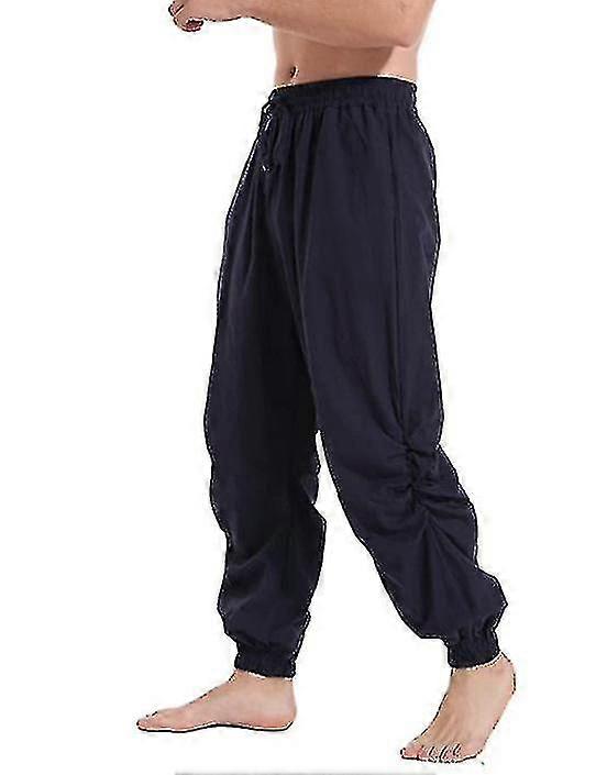 Men's Cotton And Linen Solid Colour Casual Loose Lace-up Drawstring Trousers