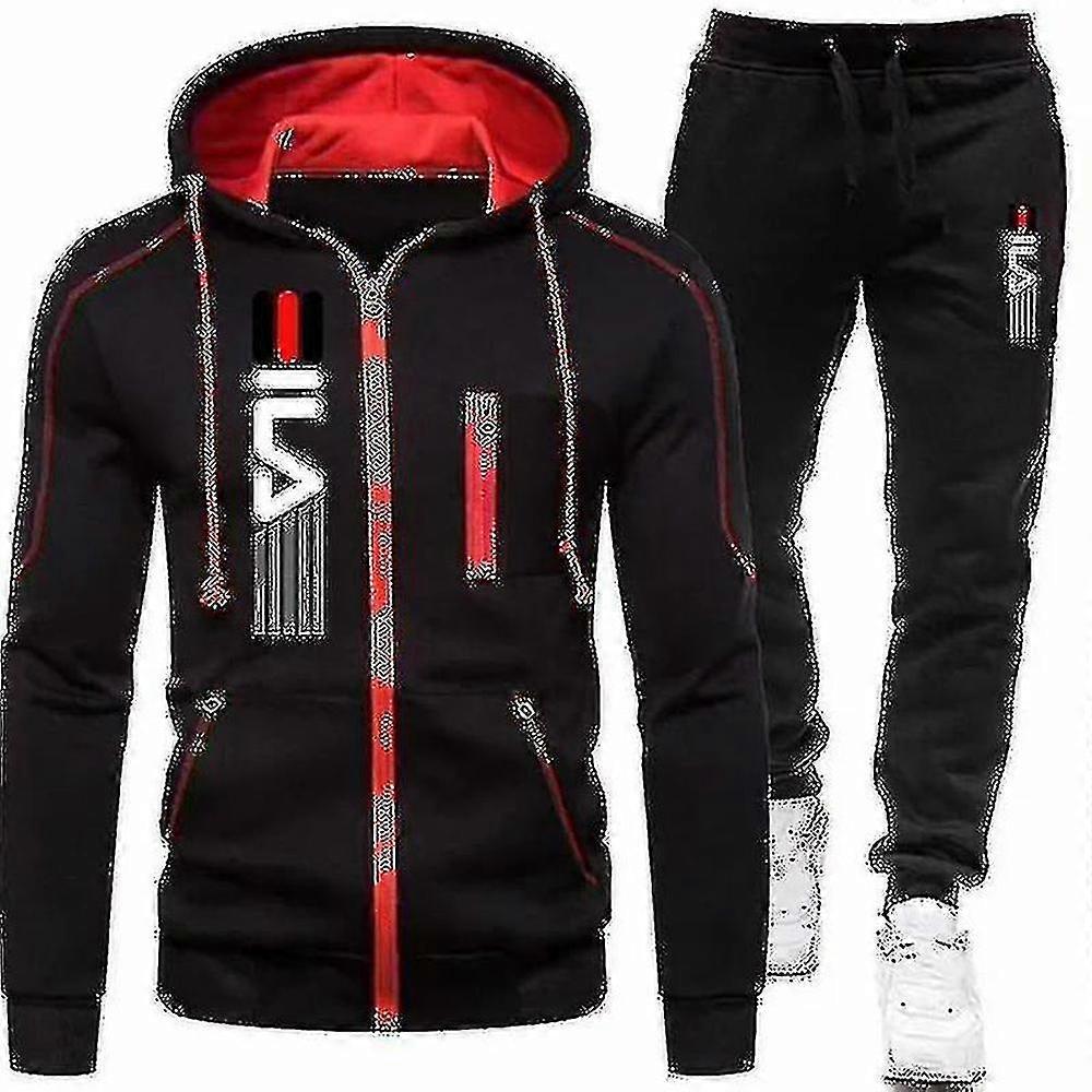 Men's Striped Print Zip Hooded Sweatsuit with Multiple Pockets