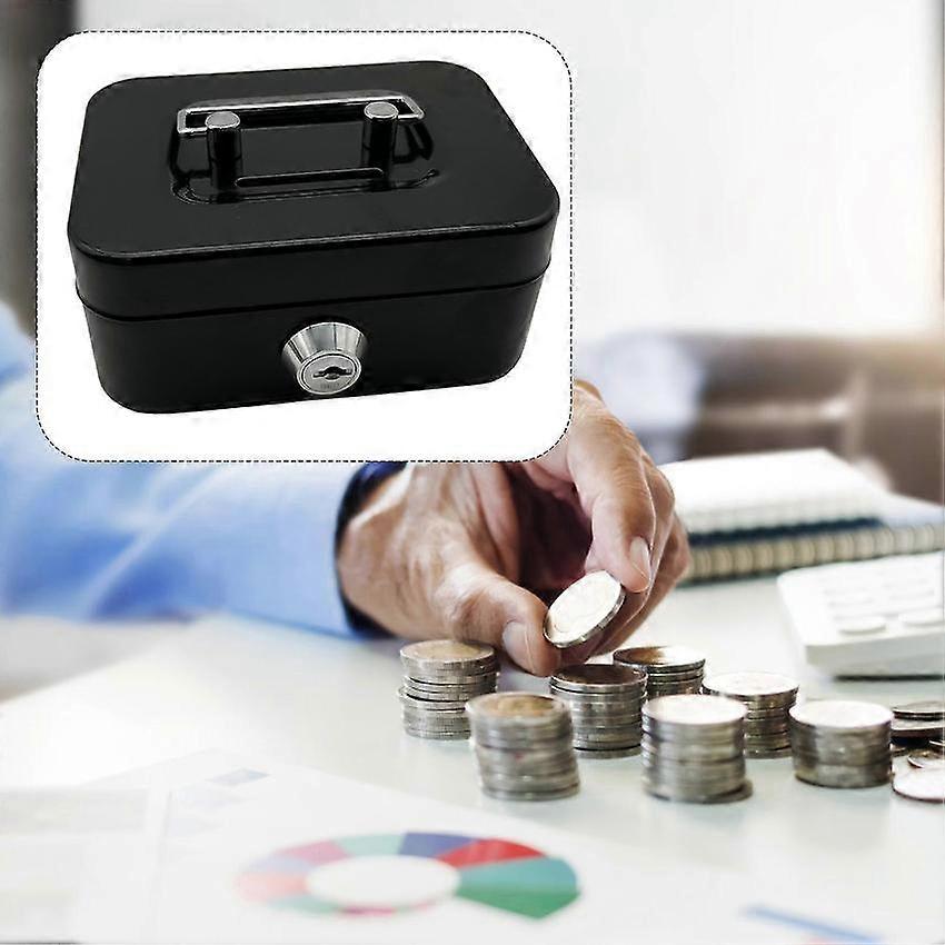Metal Money Box with Key Lock Safe Handle for Cash Coin Saving 12x8x6cm