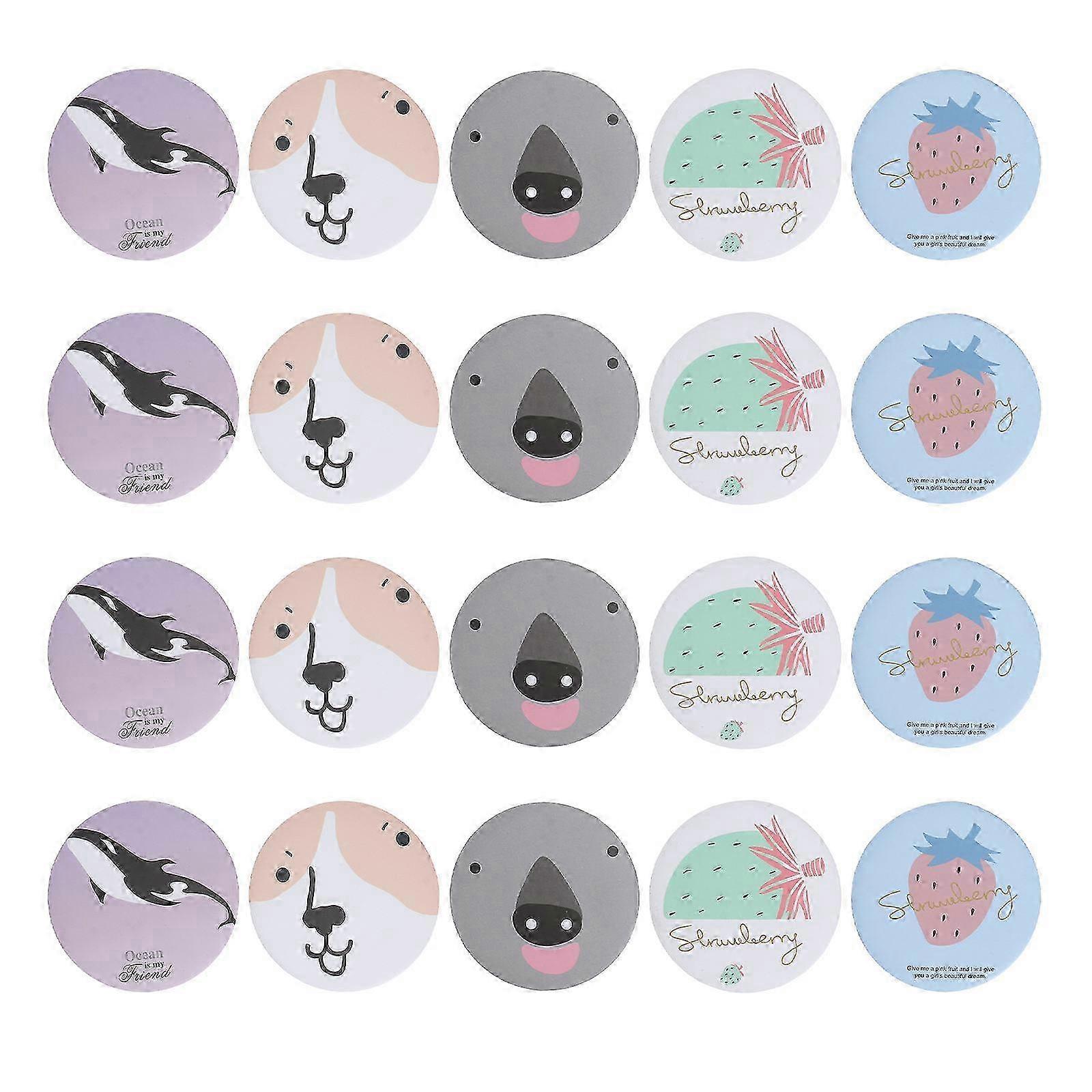 Mini Portable Pocket Vanity Mirror Cartoon Patterns High Definition Clear Surface 20Pcs