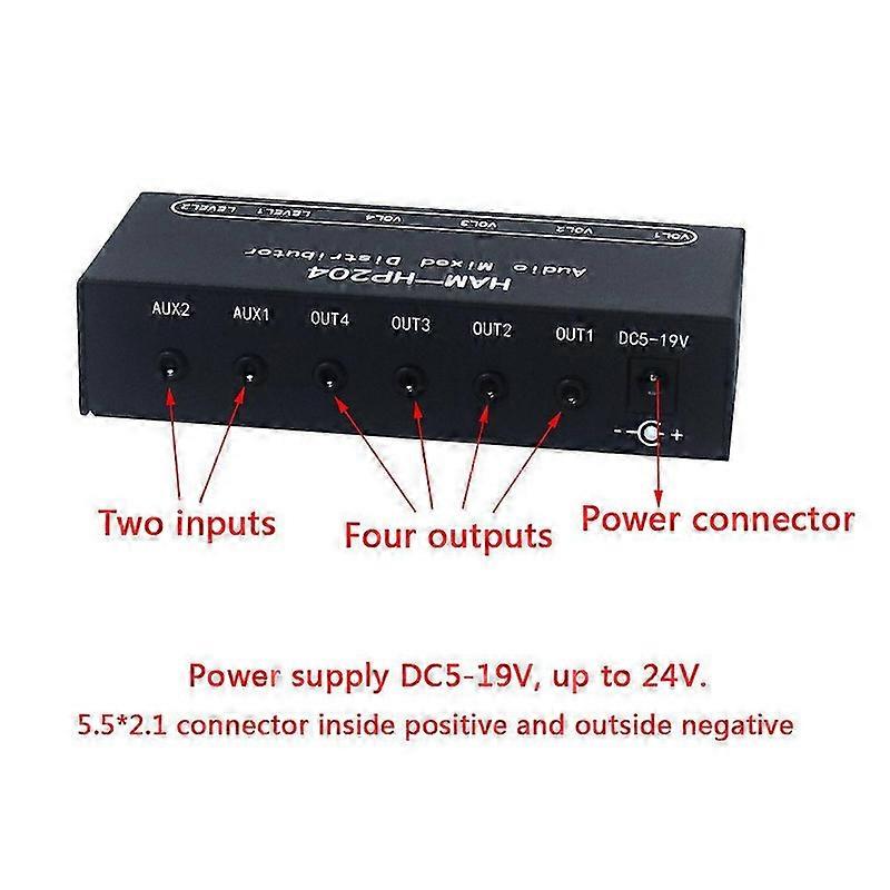3.5mm Stereo Audio Mixer Distributor Switcher 2 In-4 out Headphones Amplifier