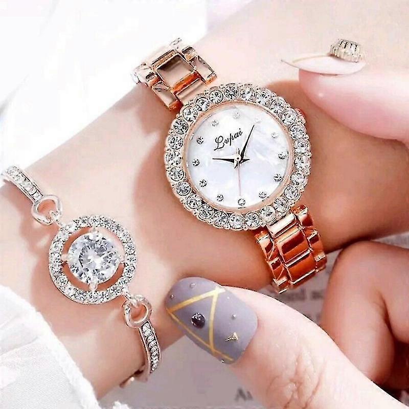 Women's Fashion Simple Quartz Watch Rhinestone Bracelet Jewelry Two Piece Set