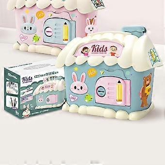 Money Bank House Shape Cute Rabbit Pattern Multifunctional Lockable Piggy Bank with Pencil Sharpener Storage Box Function for Gift