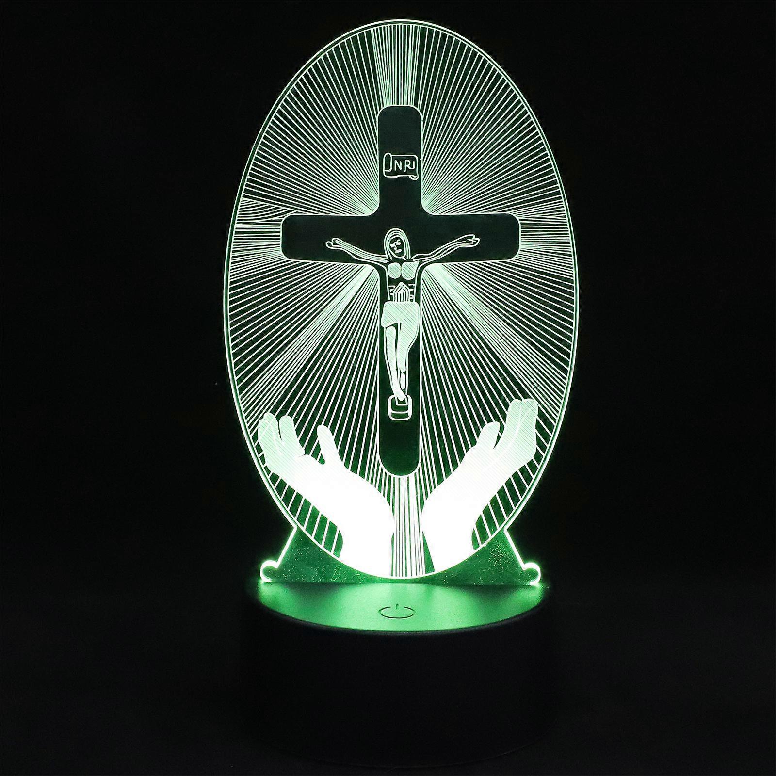Multi Color 3D Jesus Cross Desktop Night Light For Home Café Decoration Night Lamp Touch Switch 1Pcs