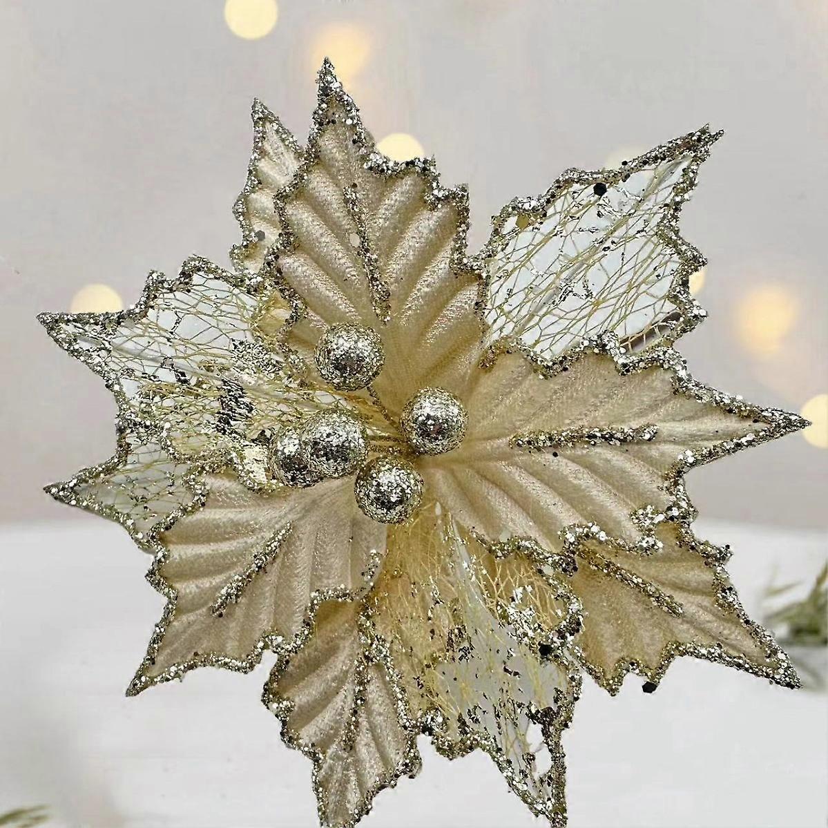 New 20CM hollow gold simulation Christmas flower champagne red pink white wreath DIY accessories champagne color 20cm