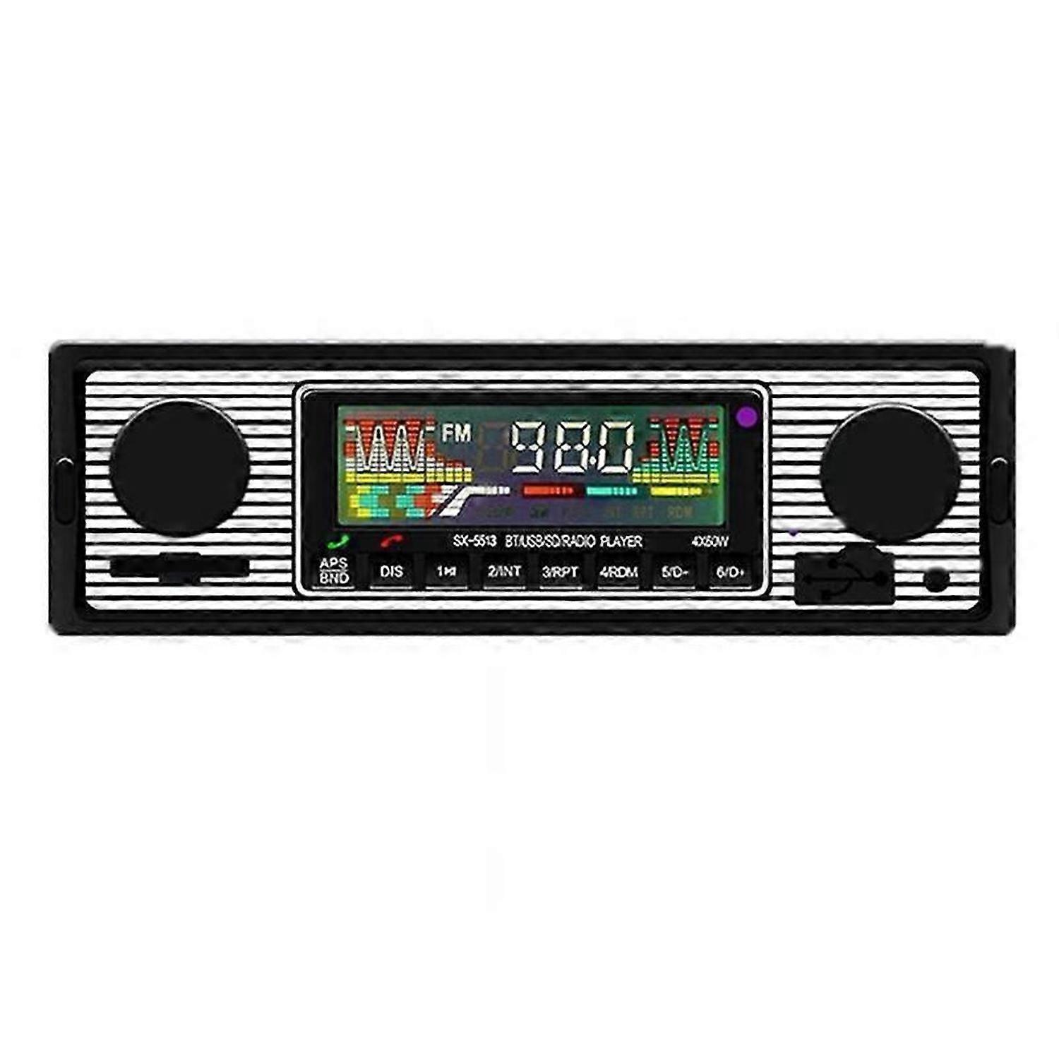 Built-in Bluetooth + microphone 2USB, fast charging USB Supports hands-free calling. Supports advanced audio mission mode. Supports clock indication when power is off.<br><br>Model:SX-5513 Storage capacity:No memory FM function:Yes (87.5-108mhz) PC interface type:Bluetooth Audio source:Car integrated MP3 player digital stereo FM radio Supports tri-band radio shop FM1-FM2-FM3 with 18 preset stations. (RF: 87.5-108MHz) Support USB / TF card reader Supports audio:MP3 / WMA / WAV formats etc. Support folder playback function Supports remote control. Rotating electronic volume control MP3 playback supports pause / preview / repeat / random play and 10 track up / down selection Electronic bass / treble / left/right balance / front/back balance volume control Front AUX audio input hole and rear terminal L / R audio RCA output hole. 4-track high power output (4 high power speakers) Input voltage:DC 12V Output power:4*60W Frequency range:87.5MHZ-108.0MHZ Maximum current consumption:15A Fitment:For Car Colour:Black Material:plastic+Metal<br><br>Package Contents: 1 set * Wireless Bluetooth Radio 1 * English instruction manual<br><br>Only the above package content, other products are not included. Note: Light reflection and different displays may cause the color of the item in the picture a little different from the real thing. The measurement allowed error is +/- 1-3cm.