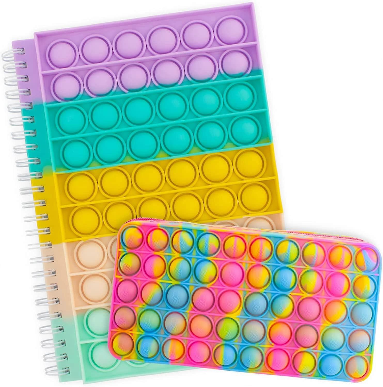 2 Pack Pop Bubble Fidget Notebook Pencil Box Sensory Toy Set,Push It Spiral Notebook Pencil Case Decompression Simple Silicone Bubbles Stress Relief P