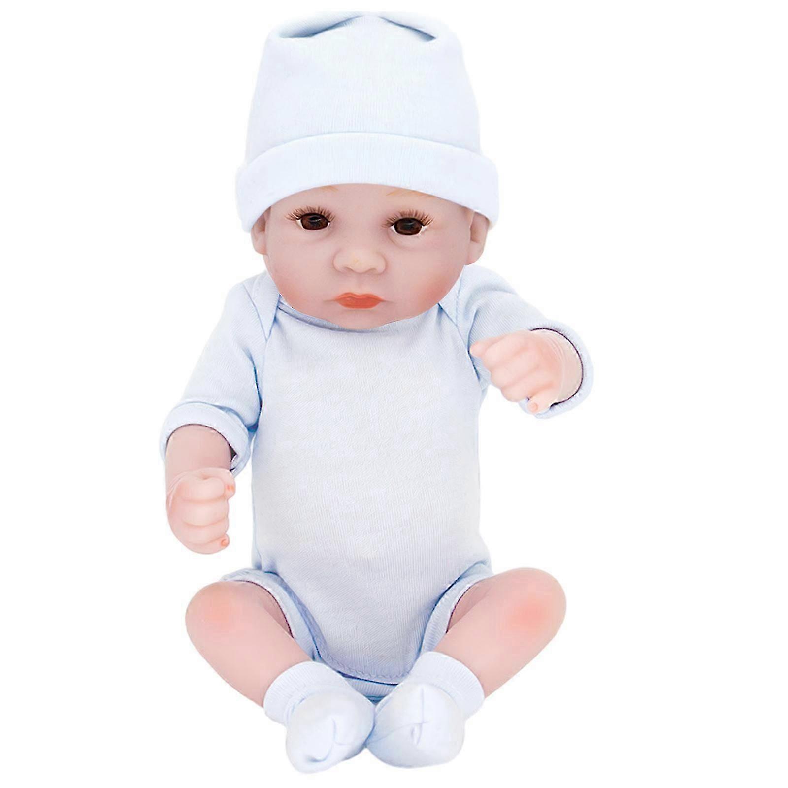 28cm Baby Rebirth Doll Hand Washable Doll with Moving Arm & Leg Soft Cuddle Doll for Toddler Birthday Gift Handmade White