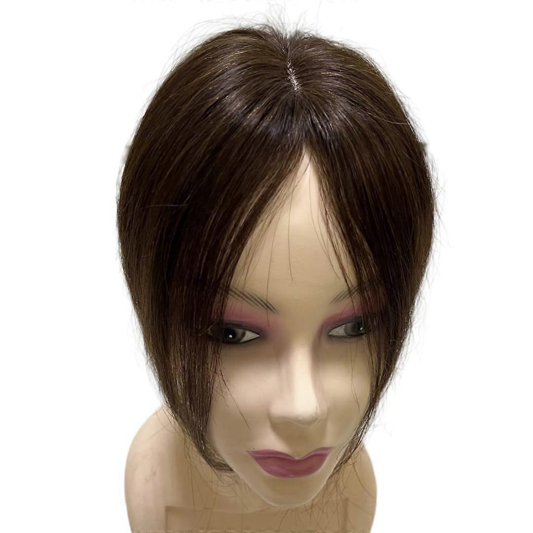 Human Hair Topper Clip in Hair Bangs for Women 10 inches Mid Part Straight
