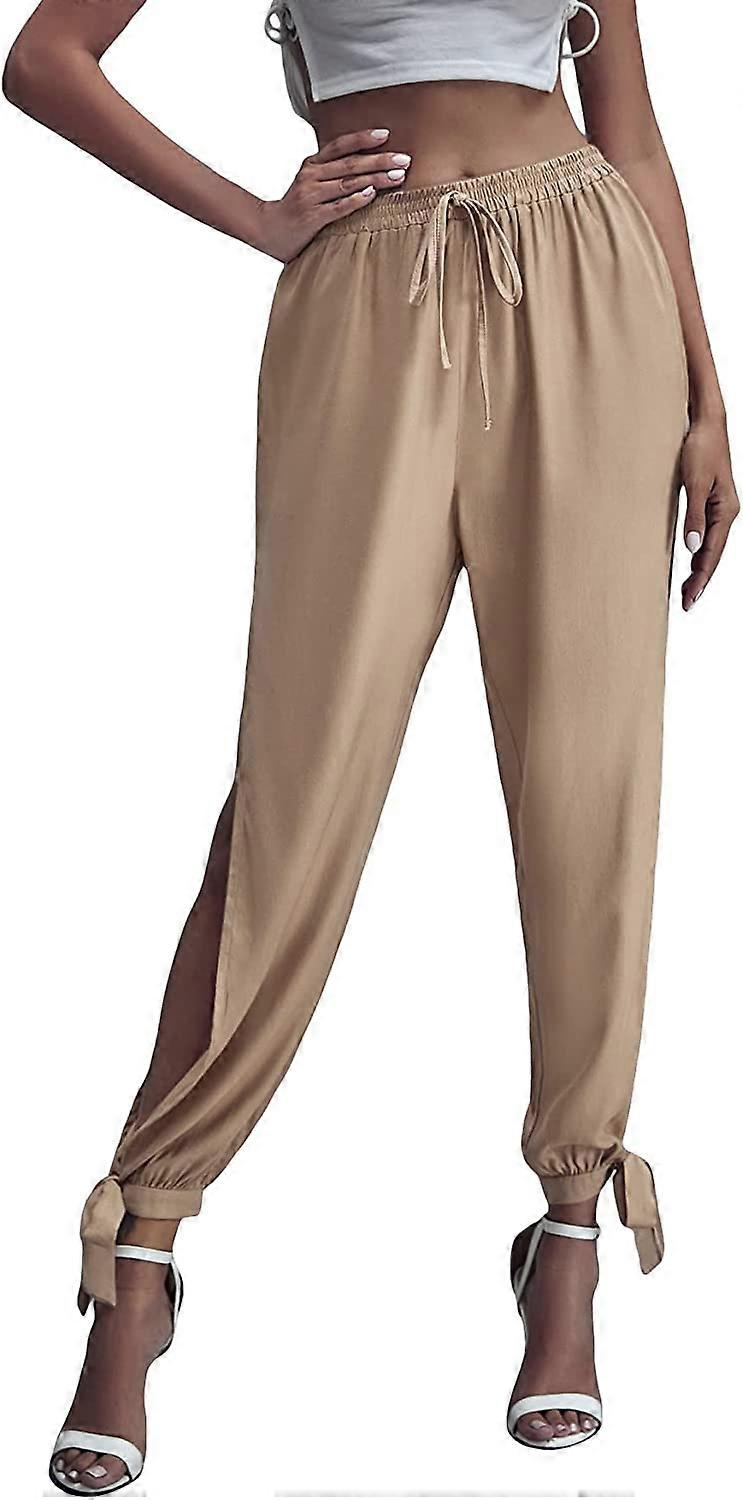 Women's Solid High Waist Split Knot Hem Long Pants S-2XL