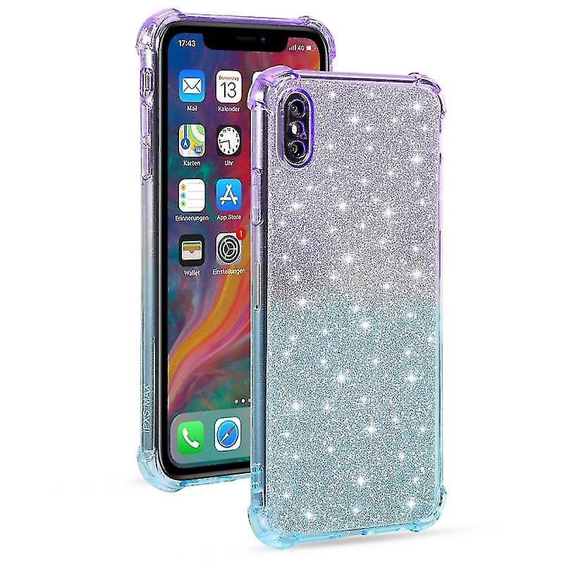 For Iphone X / Xs Gradient Glitter Powder Shockproof Tpu Protective Case(purple Green)