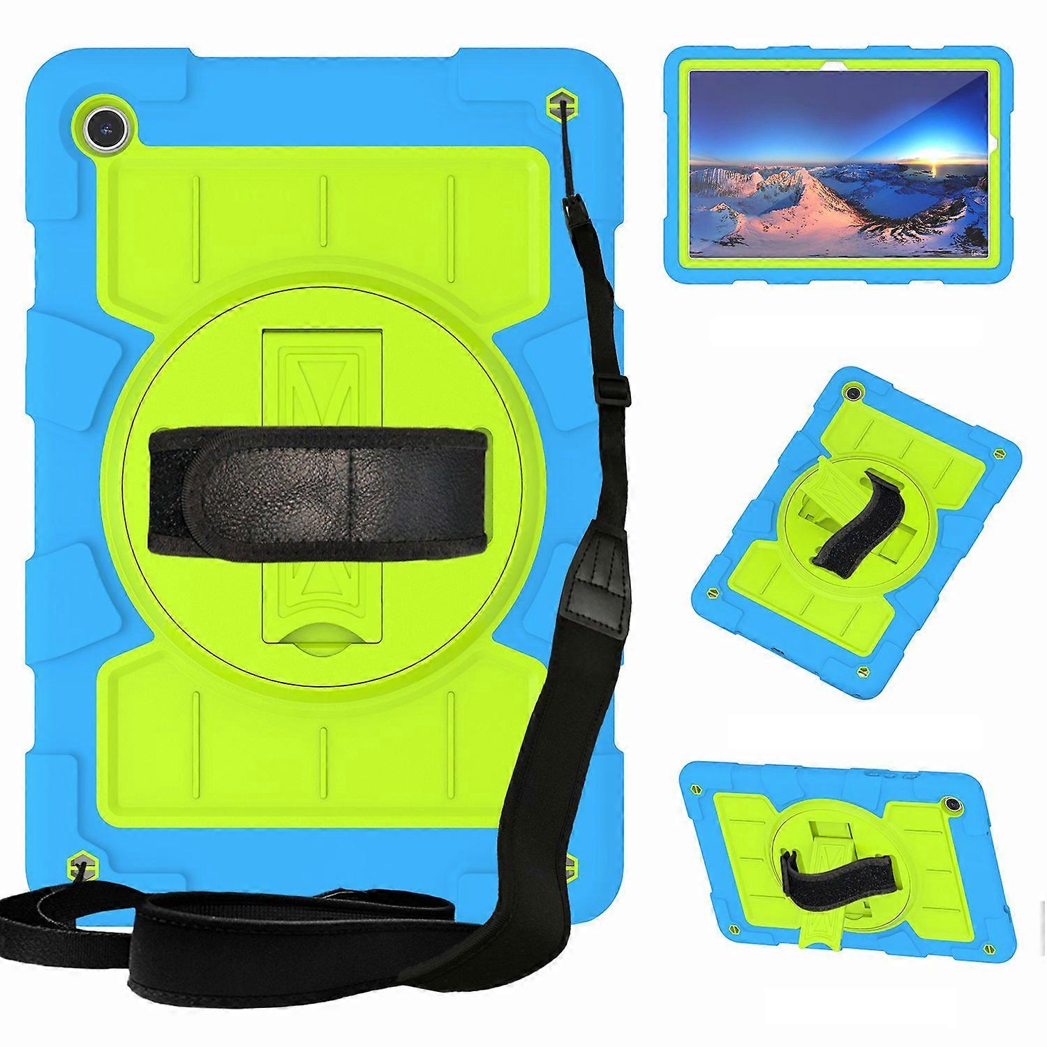 For Samsung Galaxy Tab A9+ Kickstand Case Rotating Hand Strap PC+TPU Tablet Cover with Shoulder Stra