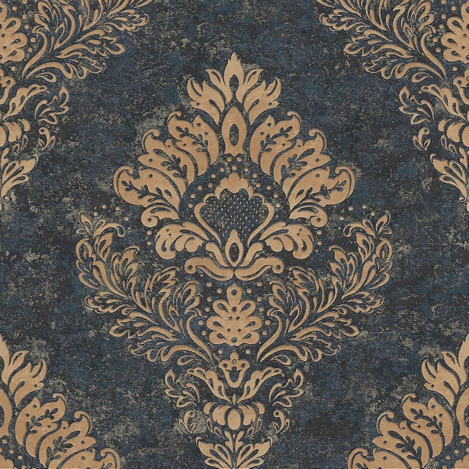 Barock Tapete Profhome 379012-GU Vliestapete leicht strukturiert mit Ornamenten matt blau gold 5,33 m2