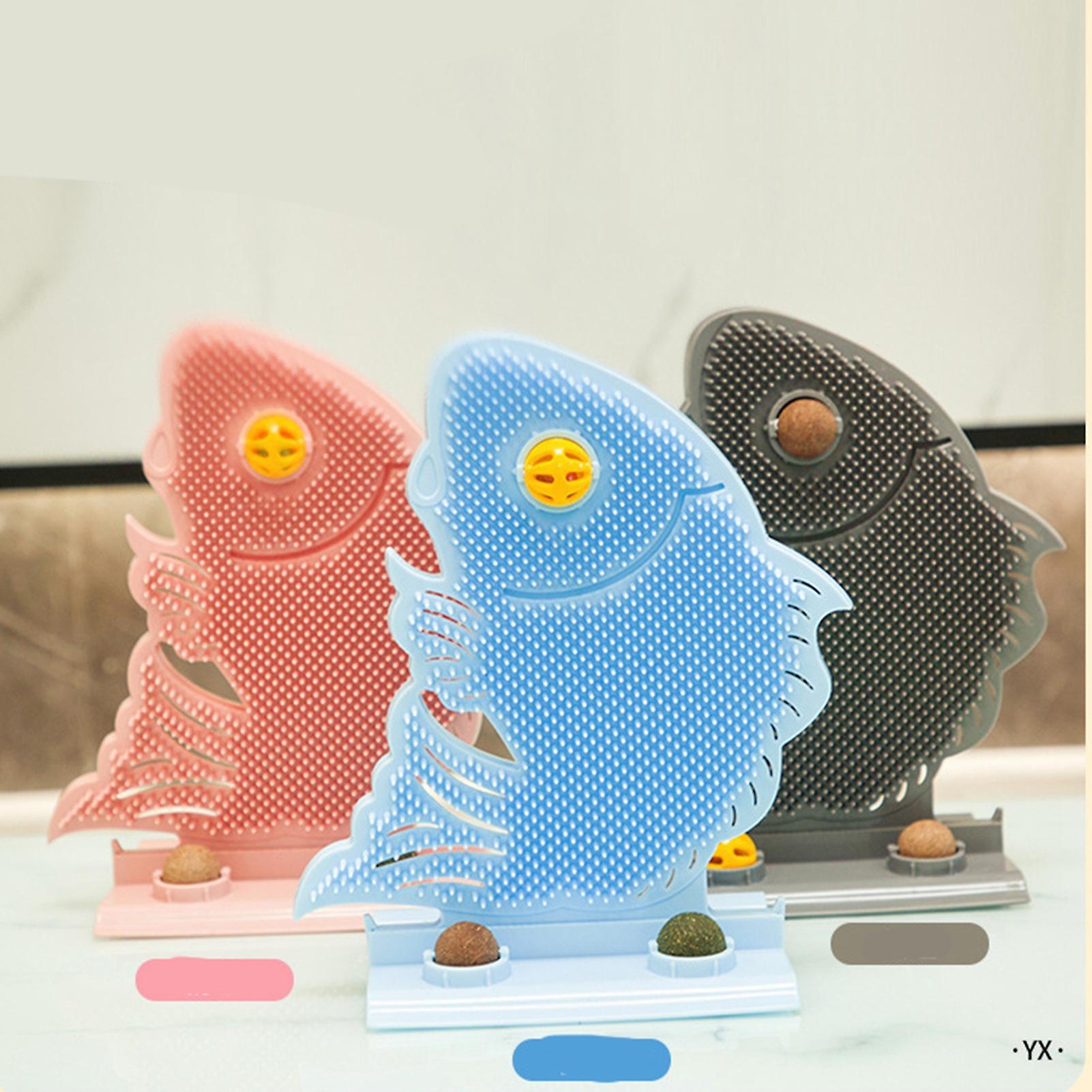 Wall Cat Self Groomer Fish Shape Massager with Catnip Bell 31x19x18.5cm Grey