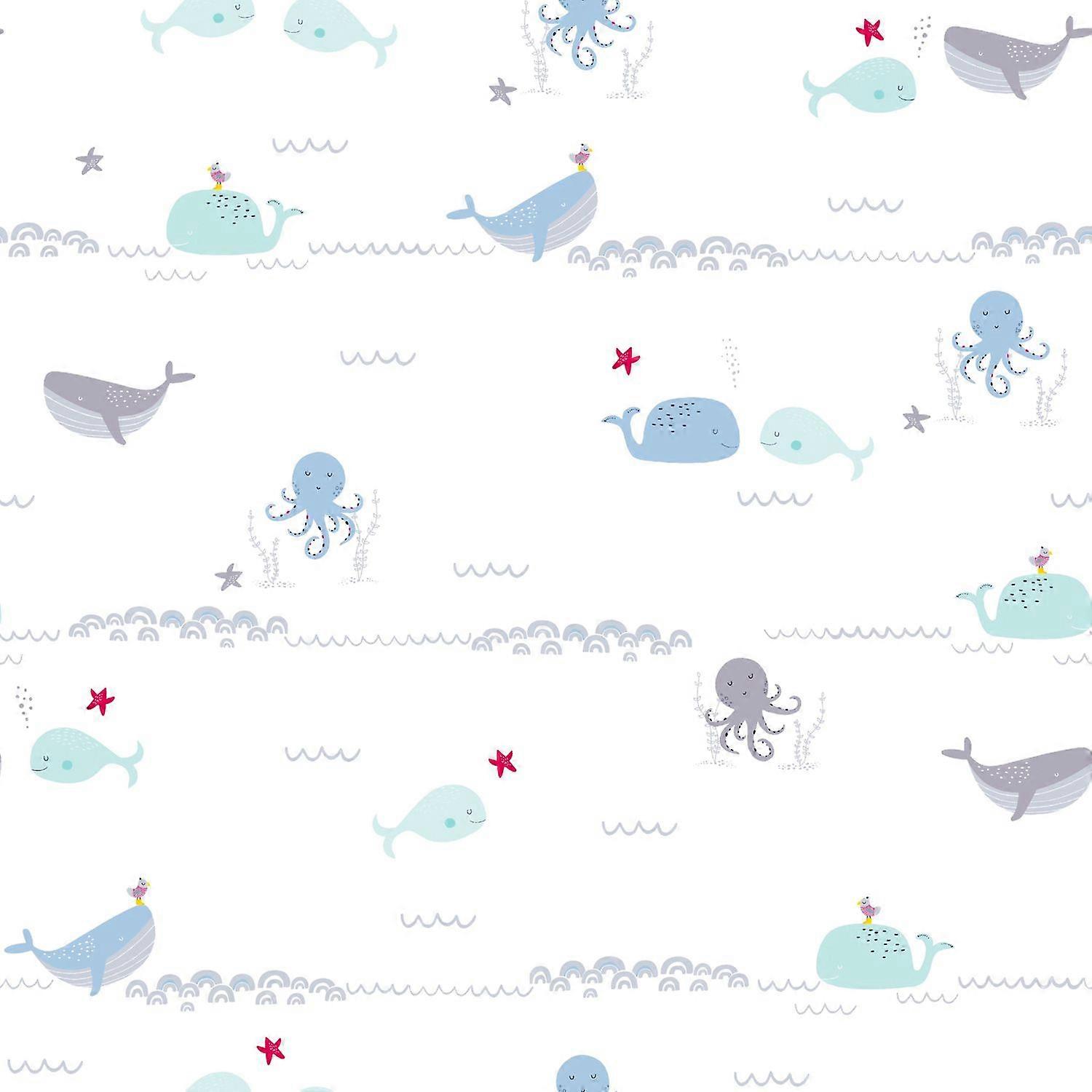 Children non-woven wallpaper wall Profhome 381301-GU slightly textured with pattern for kids matt blue grey white green