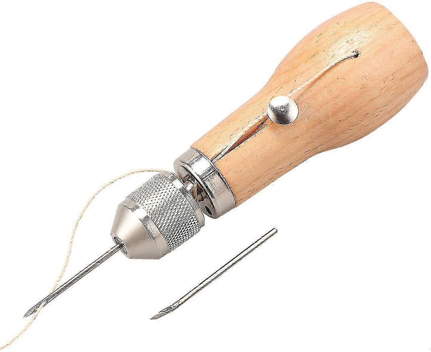 Material: Composition: wooden handle and metal needle. Sewing needle and waxed thread inside the wooden handle. Insert the hard metal strip through the upper side metal hole and pull it to open the cover. The awl includes an awl, a spool of high strength waxed thread (approx. 25 m), and 2 needles (1 straight and 1 curved). Allows you to quickly and easily sew any heavy material. Use a curved thread needle to sew in hard-to-access seam spaces. The fine-thread straight needle is for use with fine waxed thread for more delicate jobs. The needles can be changed and replaced easily. The needles are sharp, keep out of the reach of children. These needles make it easier for you to sew leather. Perfect for repairing tents, backpacks, sleeping bags, saddles, harnesses and more. Product Excellent for repairing tents, backpacks, sleeping bags, upholstery, with the ability to create your own kit. Use the heavy-thread curved needle for hard-to-reach areas. The fine-thread straight needle is for use with fine waxed thread for more delicate jobs. Package contents: 1 tool. 2 needles. 1 wire of wax.
