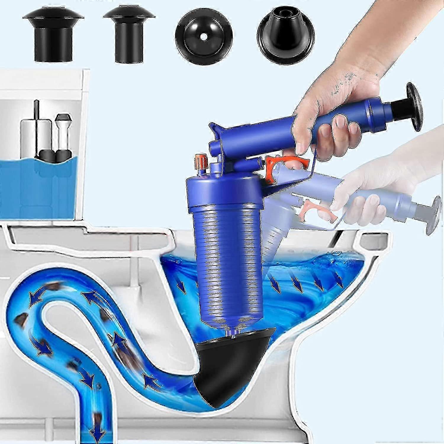 Toilet Plunger, Drain Cleaner, Drain Clog Remover With 4 Sized Suckers, High Pressure Air Drain Blaster Gun