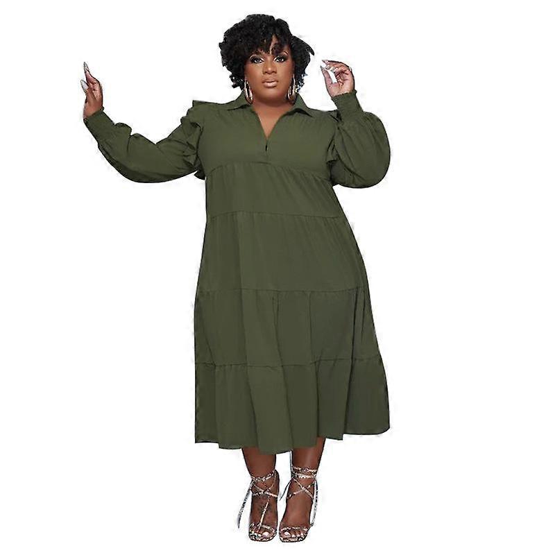 Spring and Autumn Women's Dress Plus Size Long Sleeve Layered Hem Dresses
