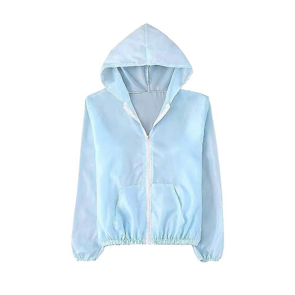 Product Description:1. Product name: Summer solid color sunscreen clothing2. Product size: M average code is suitable for 70-120 pounds, L extra code is suitable for 100-160 pounds3. Product style: Jacket4. Product color: light blue, white, pink, fluorescent green5. Material: Polyester fiberProduct features:1. This summer sunscreen coat for women is made of light fabric, good air permeability, comfortable to wear, not easy to produce stuffy feeling, very suitable for summer outdoor activities.2. Sun protection clothing with elastic cuffs and zipper design, so that you wear more comfortable.3. The hooded design makes the sunscreen more practical and can act as a shade to protect the head and neck from direct sunlight.4. Sunscreen clothes with solid color design, simple and generous, suitable for different clothing styles, add a sense of fashion.5. This sunscreen clothing also has the characteristics of quick drying, can quickly absorb and eliminate sweat on the body, maintain a dry and comfortable wearing experience, suitable for long-term outdoor sports and activities.Attention:1. As we all know, different computers display different colors, and the real color may be slightly different from the following picture.2. Due to manual measurement, the size may have an error of several centimetersPackage includes:1 pc solid color sunscreen