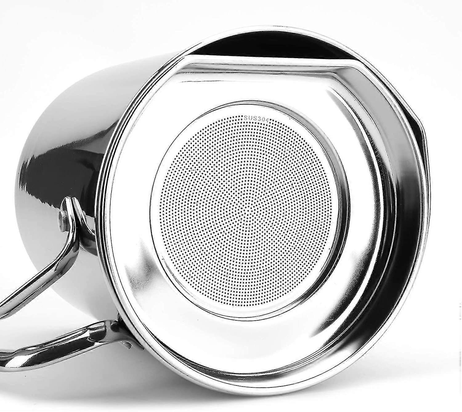 2 L Grease Container With Strainer, Stainless Steel Oil Strainer Pot Grease Can With Dust-proof Lid