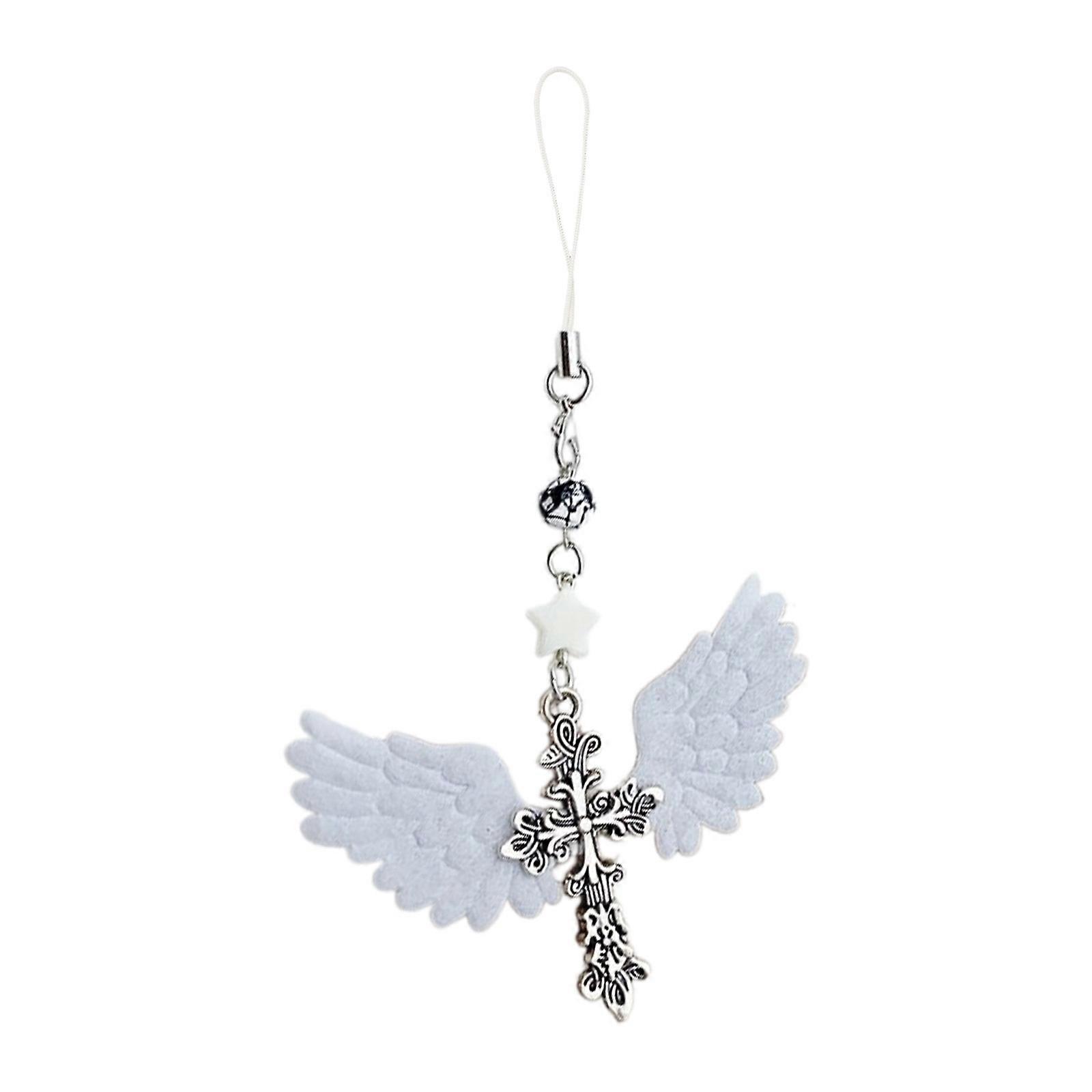 Retro Dark Gothic Angel Wing Star Key Ring Elegant Keychain Alloy Fashion Accessory Bag Pendant for Purse Handbag White