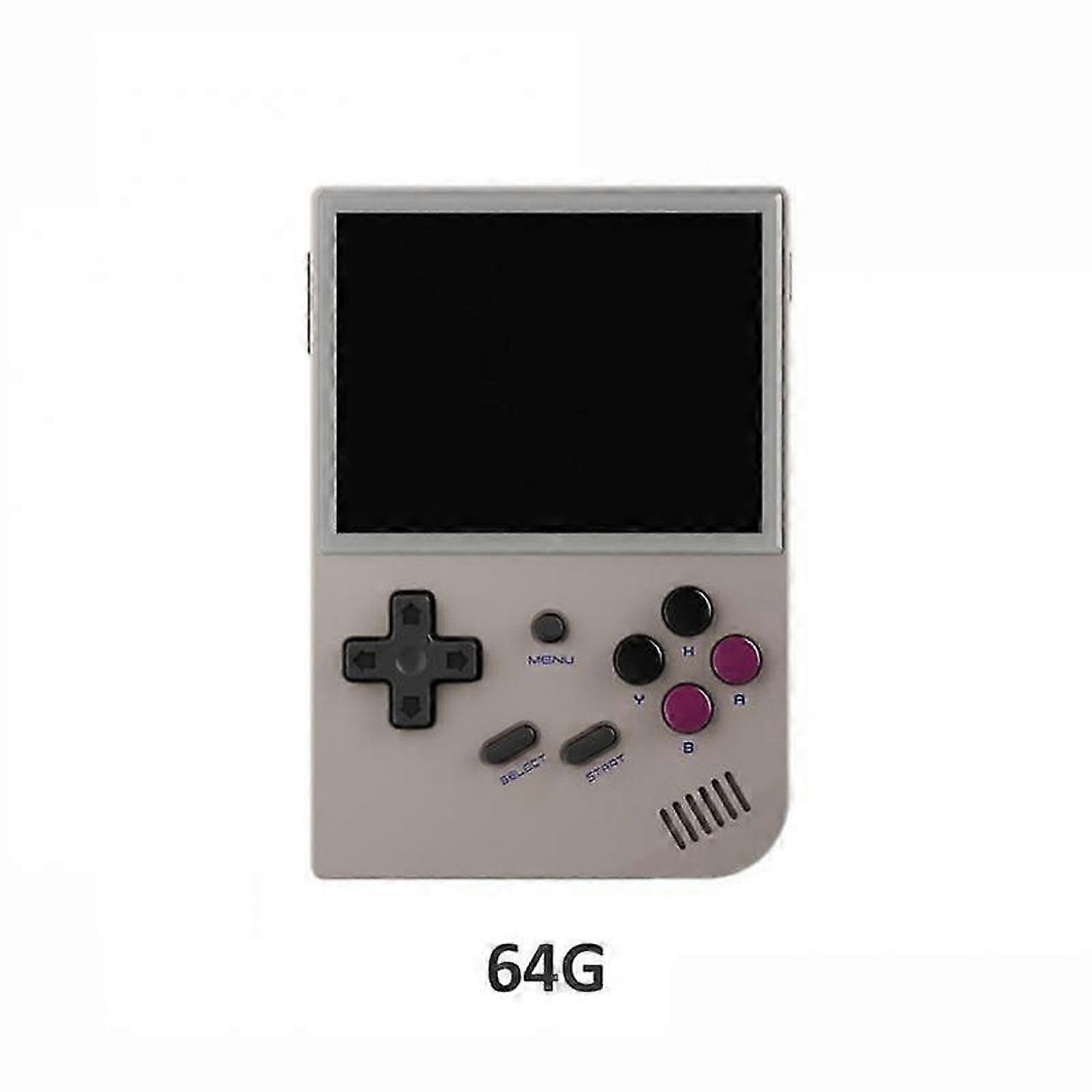 RG35XX Linux System Retro Handheld Game Console 3.5 Inch IPS Screen Cortex-A9 Portable Pocket Video Player 5000 Games Boy Gift<br> Product Parameters:<br> Color:Gray,Transparent white,Transparent purple<br> Screen:3.5-inch IPS full viewing angle, OCA full lamination/ 640*480<br> CPU:quad-core ARM Cortex-A9<br> GPU:Quad-core PowerVR SGX544MP GPU<br> RAM:DDR3 256MB<br> Storage:64GB TF/MicroSD<br> System:Linux<br> Games:Support: PS1,CPS,FBA,NEOGEO,GBA,GBC,GB,SFC,FC,MAME,MD,GG,<br> PCE,NGPC,SMS,WSC and other formats of the game.<br> Support users to download games in relevant formats<br> Language:Chinese, English, Japanese, Korean, Spanish<br> Speaker:High-fidelity speaker<br> TF card:Dual card slots, support TF card expansion, maximum 512GB<br> Battery;Li-polymer battery 2100 mAh, lasting 5 hours<br> Charging:5V/1.5A, support C2C charger<br> Other function:Support 2.4G wireless gamepad and wired gamepad connection, HDMI output TV, vibrating motor<br> Specifications:<br> [RG35XX Retro Game Handheld Game Machine] RG35XX Classic Video Game Machine, RG35XX has a 3.5-inch IPS full-view screen and adopts OCA full lamination process. 640*480 resolution. The main body weighs only 165 grams, which is more portable.<br> [Linux System] RG35XX RG35XX uses a device-independent operating system-Linux, with a highly adaptive kernel. It has built-in ATM7039S quad-core ARM Cortex-A9 CPU and quad-core PowerVR SGX544MP GPU. The game runs more smoothly.<br> [Support 2 players and HDMI output TV] RG35XX supports connecting 2.4G wireless controller and wired controller, HDMI output TV, vibration motor. Leisure time, friends and relatives participate in cooperation or competitions, which is also a good helper for close relationships.<br> [Various Game Simulators]: RG35XX has a built-in 64G TF card and more than 5470 games are pre-installed. Support: PS1, CPS, FBA, NEOGEO, GBA, GBC, GB, SFC, MAME, MD, GG, PCE, NGPC, SMS, WSC and other game formats. In addition, users are also supported to download games in related formats.<br> Package Included:<br> 1 * gaming machine,<br> 1 * Tempered film,<br> 1 * charging cable,<br> 1 * Instructions<br> OR<br> 1*Bag