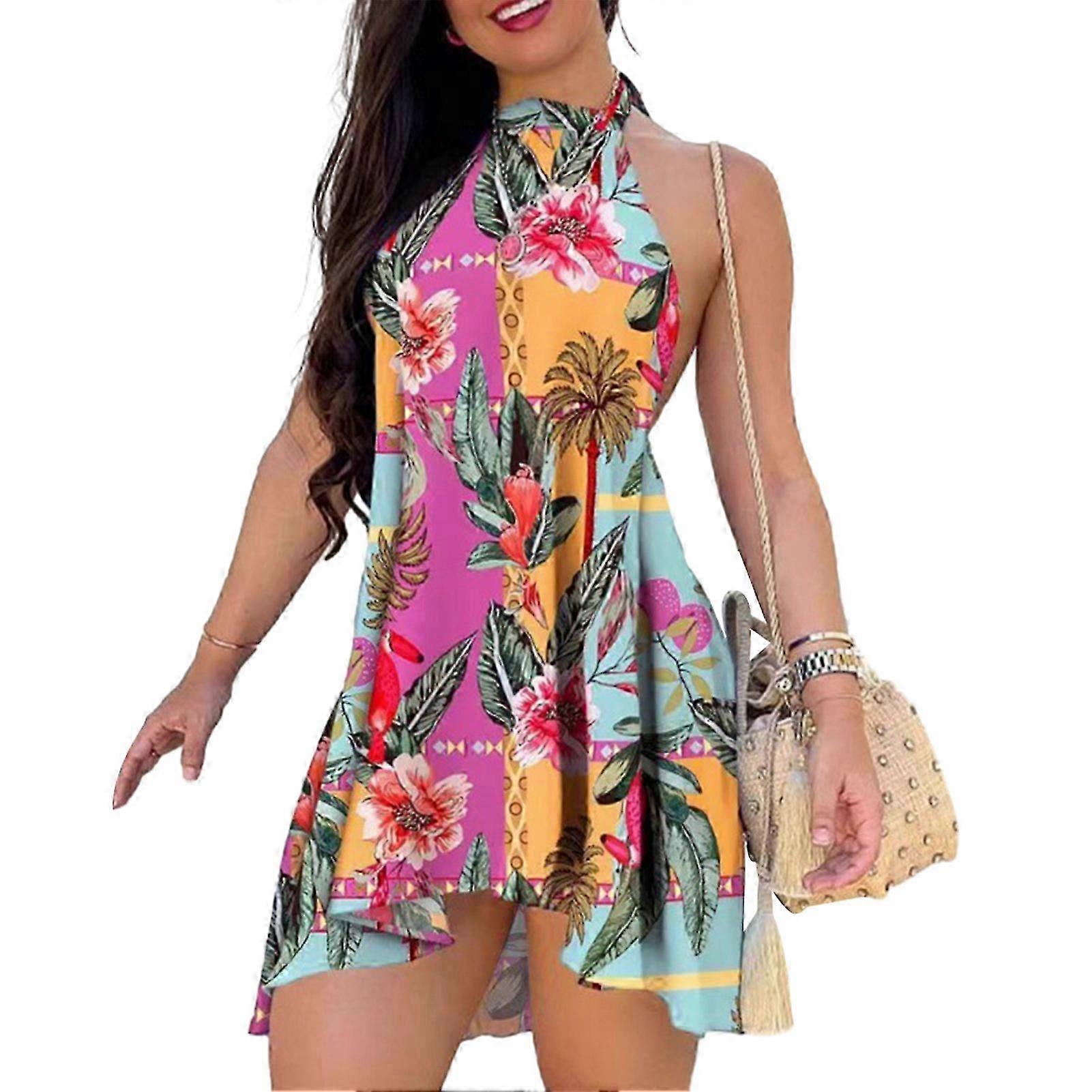Colorful Printed Backless Strappy Dress All-match Breathable Clothing for Beach Party Travel