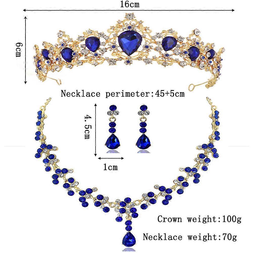 Wedding Dress Accessories Crown Necklace Earring Set for Women 2Sets Blue