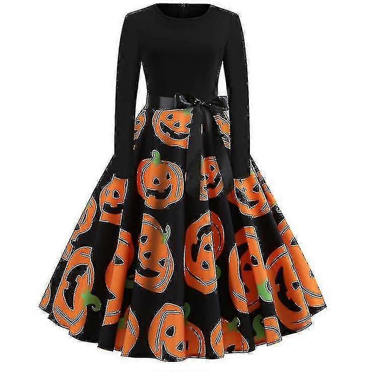 Halloween Dresses Womens Skeleton Pumpkin Printed Party Costume High Quality