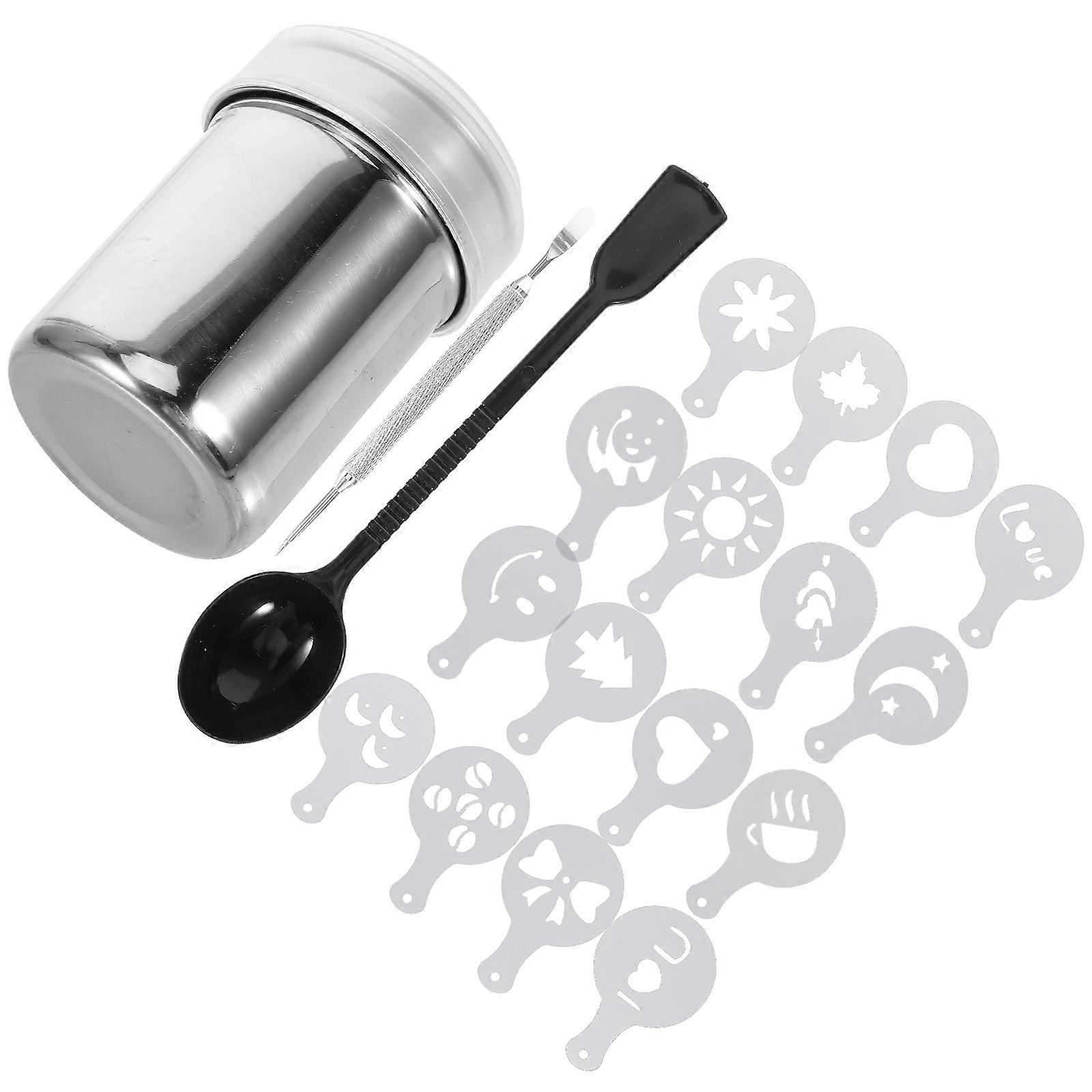 Latte Art Stencils 1 Set Of Cappuccino Stencils For Kitchen Use With Measuring Spoon And Powder Shaker In Transparent Color