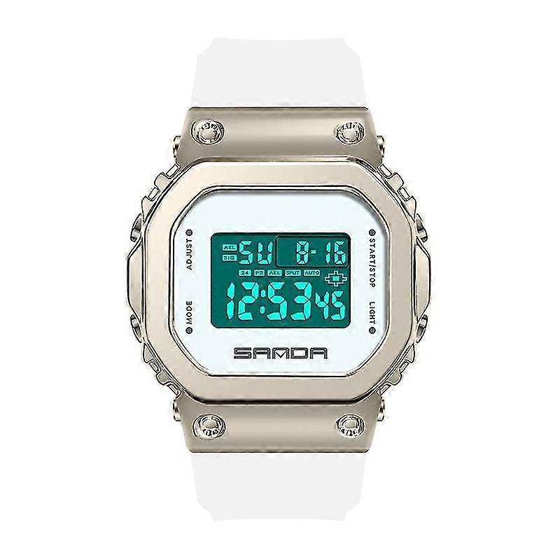 Sanda 9006 Led Digital Display Square Dial Electronic Watch White Gold