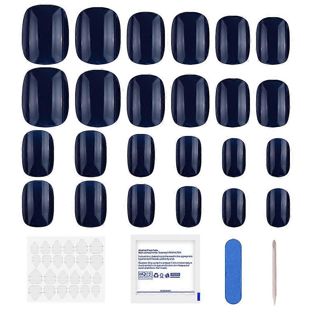Short Blue Fake Nail Patch Removable Press On Nails Wearable Finished Nail Patch