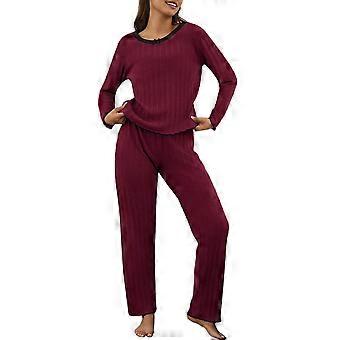 Lounge Sets for Women Long Sleeve Knit Ribbed Pajama Sets 2 Piece Casual Loungewear Red L