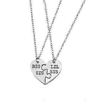 2PCS Puzzle inima pandantiv colier Little Big Sister Forever Coliere bijuterii cadou de absolvire Winomo