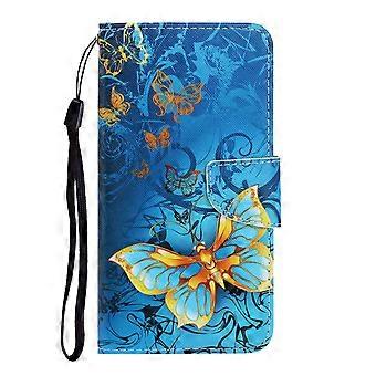 Husă de telefon cu portofel din piele Flip cu imprimare cu model pentru Samsung Galaxy A21s - Gold Butterfly