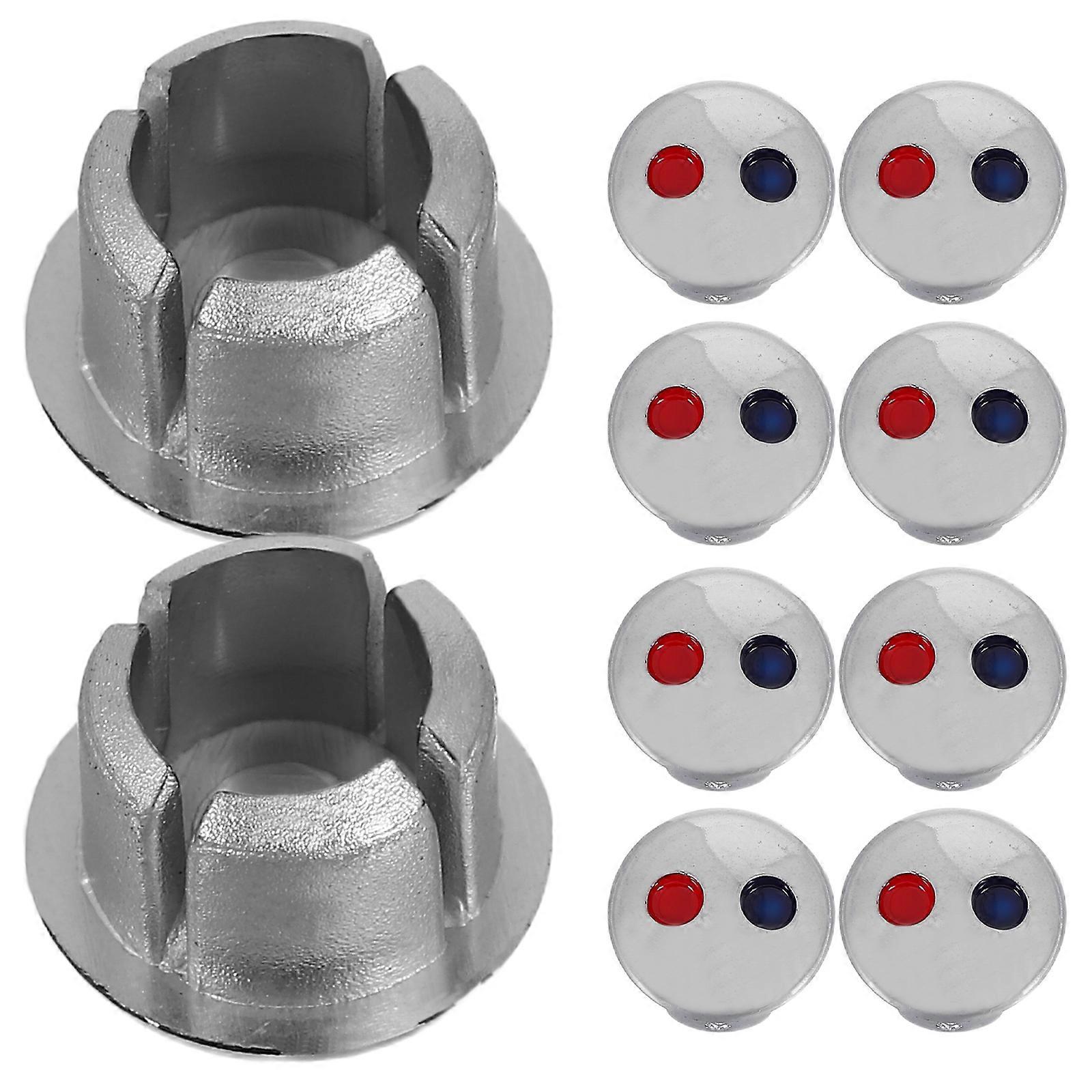 Hot And Cold Water Sign For Faucet Handle Hole Cap Kitchen Faucet Replacement Cover Minimalist Style Silver 10Set