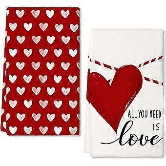 Set de 2 prosoape de bucătărie cu tematică de Ziua Îndrăgostiților, prosoape imprimate 3D cu tematică de Ziua Îndrăgostiților (A)