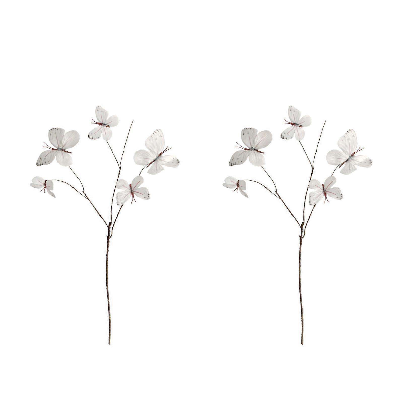 Set Of 2 Silk Butterfly Flower Stems Event Decoration Faux Branch For Vases Safe for Home Party Supplies White