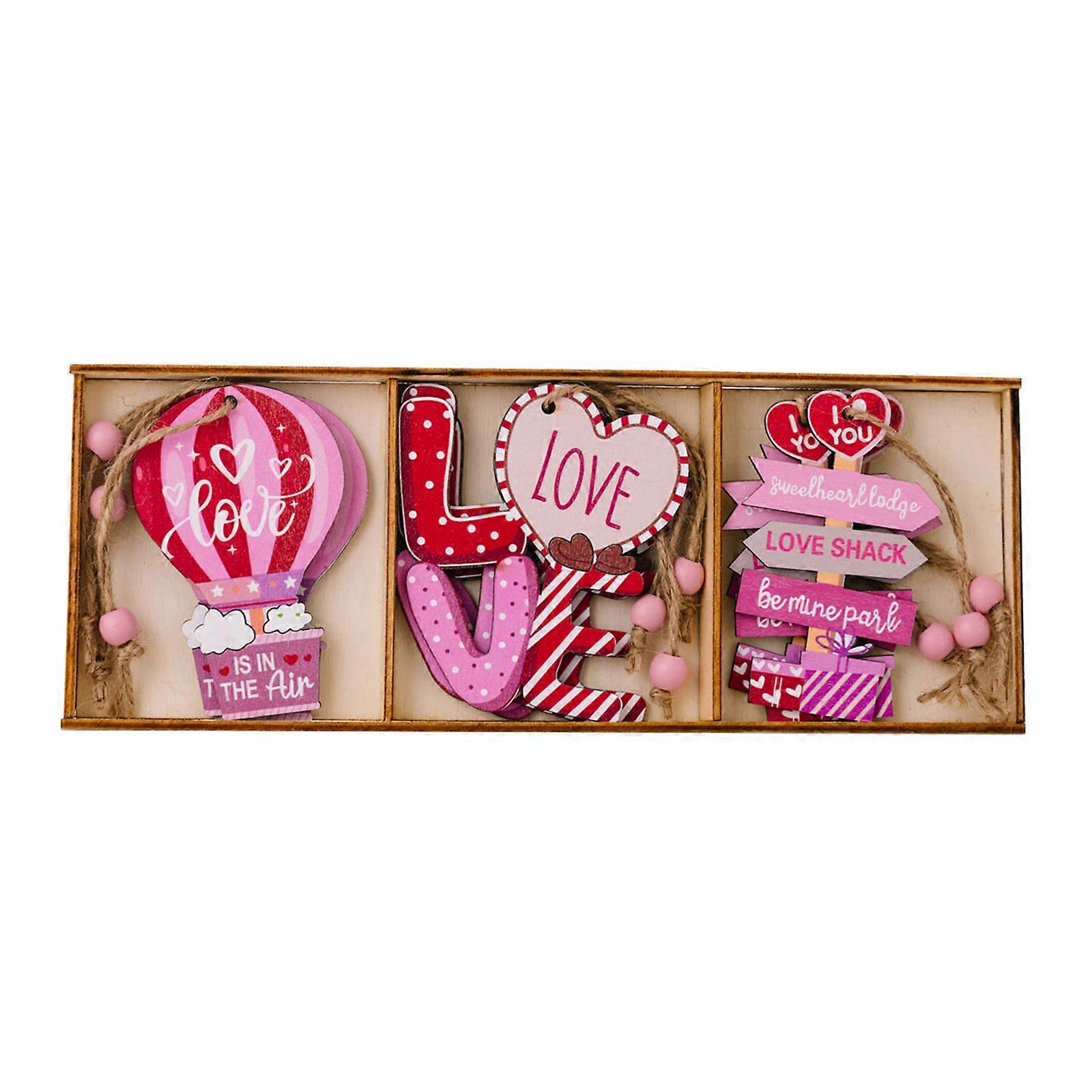 Set of 3 Wood Decorative Set Valentine's Day Themed Hangings Lovely Couple Key Chain Colorful Pendants Accessories